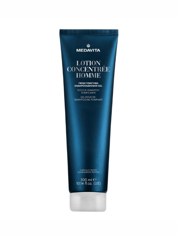Medavita Lotion Concenrée Homme Fresh Tonifying Shampoo & Shower Gel — це універсальний засіб 2-в-1, розроблений для дбайливого очищення, зволоження та тонізації шкіри голови й тіла. Завдяки екстрактам розмарину, сереноа репенс та інших цінних рослинних компонентів, він допомагає запобігти випадінню волосся та забезпечує тривале відчуття свіжості.